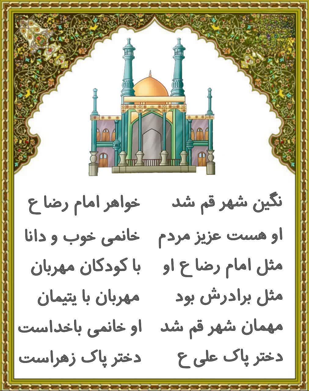 🌸نگین شهر قم شد 🌸او هست عزیز مردم 🌸مثل امام رضا ع بود 🌸مثل برادرش بود 🌸مهمان شهر قم شد 🌸دختر پاک علی ع